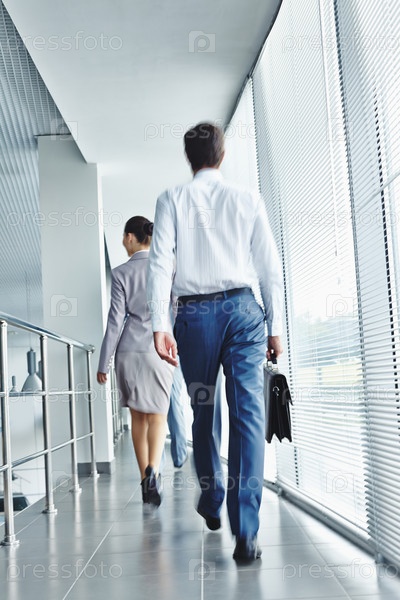 Коллеги идут по коридору офиса