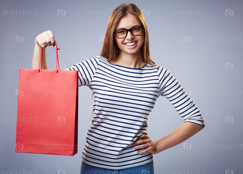 Счастливая девушка с покупками