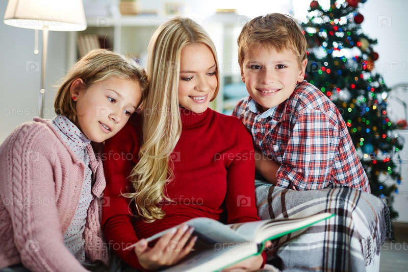 Мать с детьми читают книгу