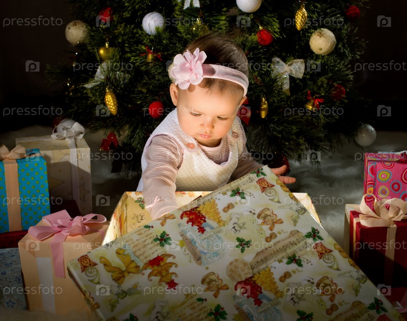 Маленькая девочка с рождественским подарком