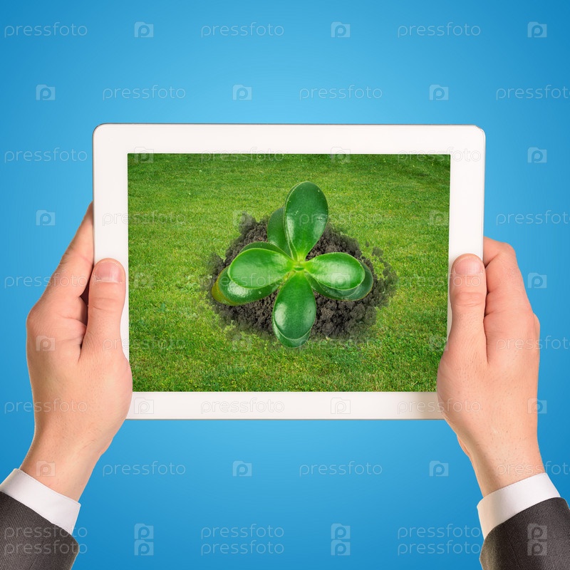 Зеленый росток на планшете