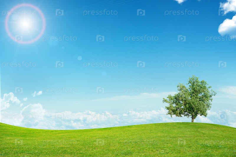 Пейзаж с голубым небом и солнцем