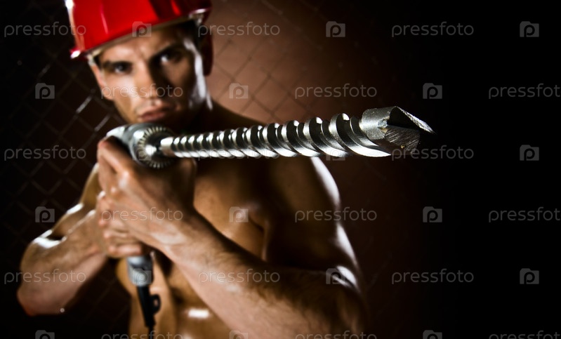 Накаченный мужчина с дрелью