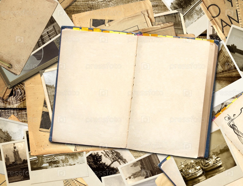 Старые фотографии и открытая книга