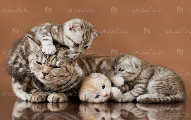 Котята с кошкой