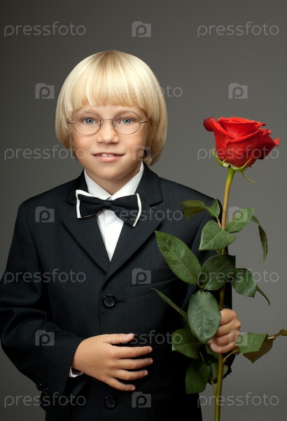 Маленький мальчик с красной розой