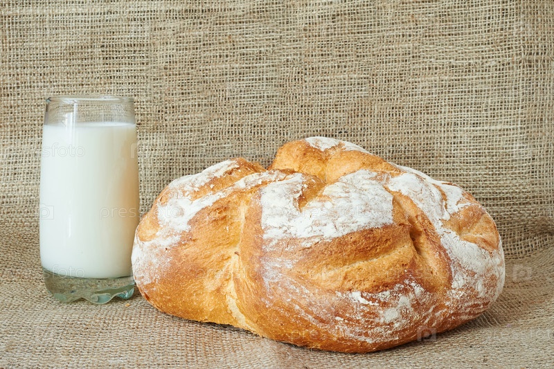 Стакан молока с хлебом