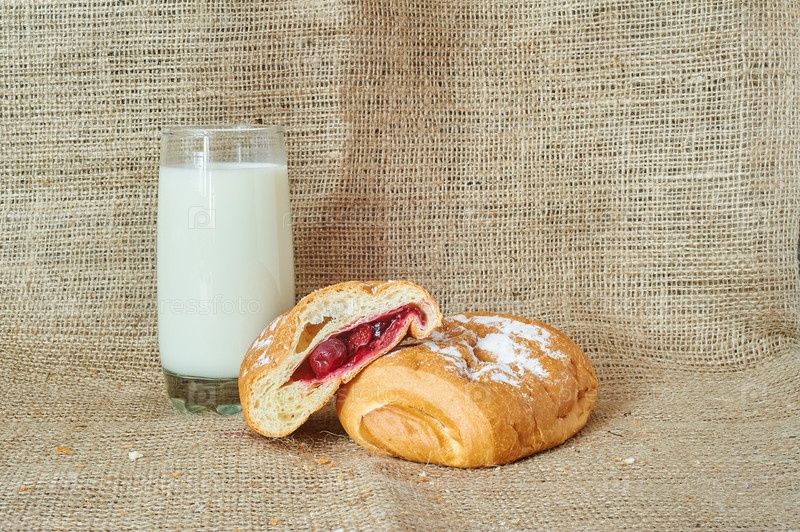 Стакан молока и булочки