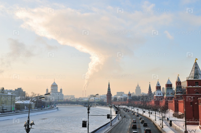 Панорама вдоль Московского Кремля зимой