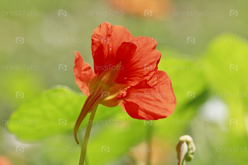 Цветок оранжевой настурции на зеленом фоне