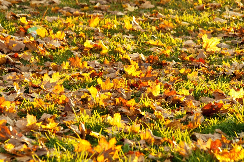 Осенние листья на земле, освещенные солнечным светом