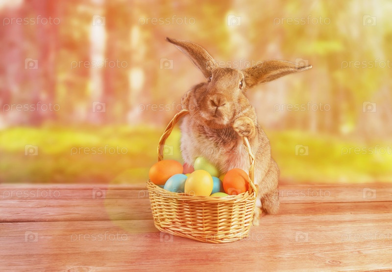 Пасхальный кролик сидит с корзиной
