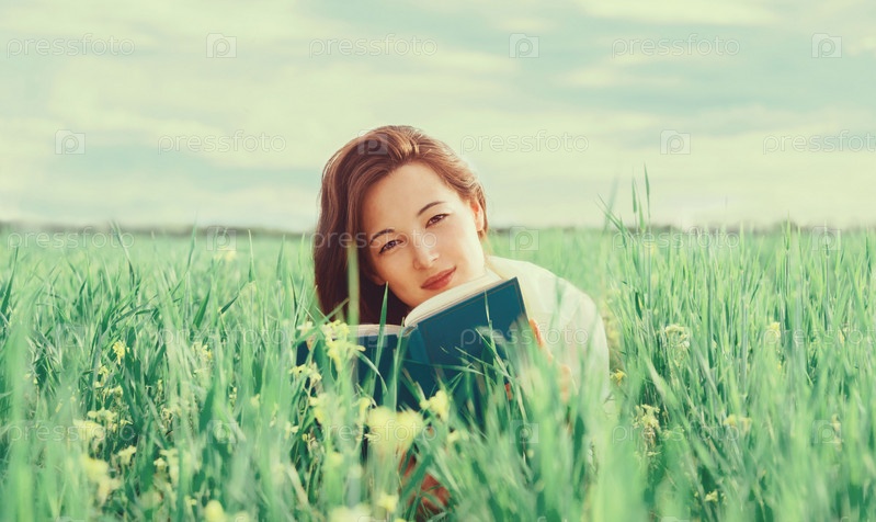 Женщина с книгой на летнем лугу