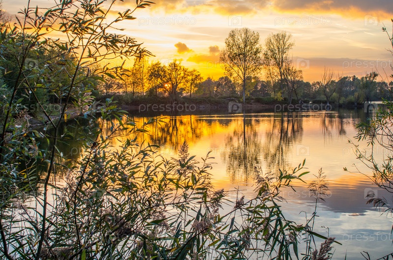 Красивый пруд на закате
