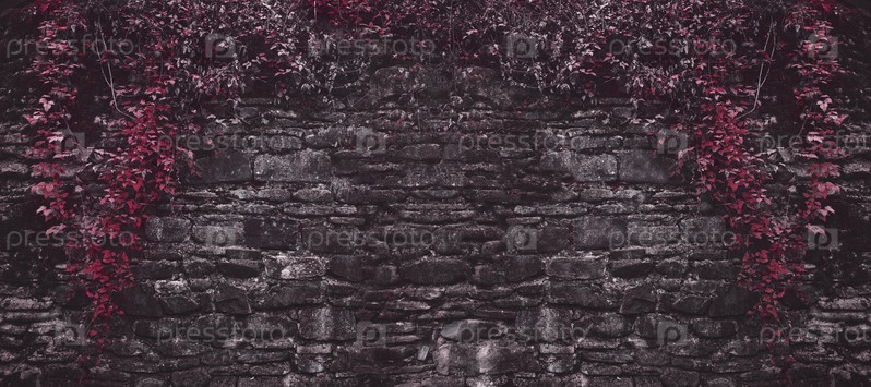 Старая кирпичная стена с красной растений