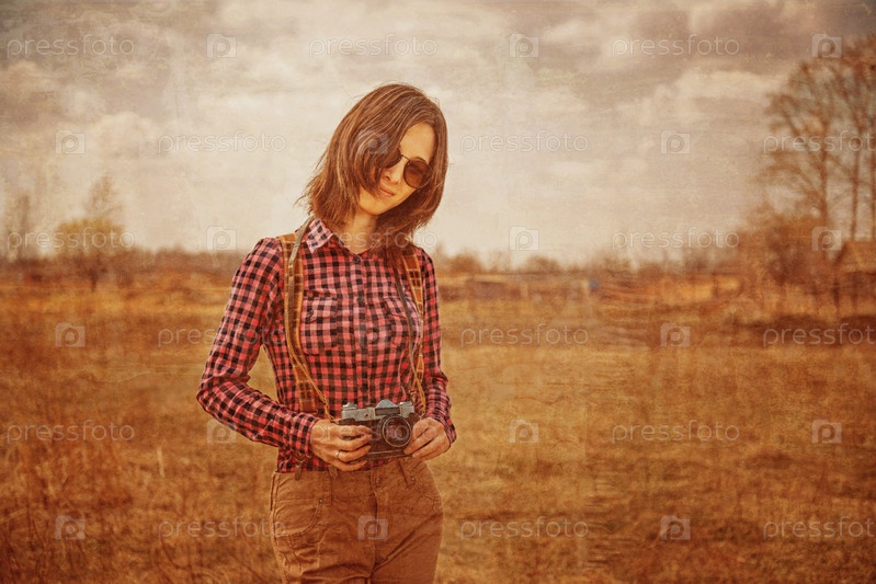 Девушка с винтажные фото камеры