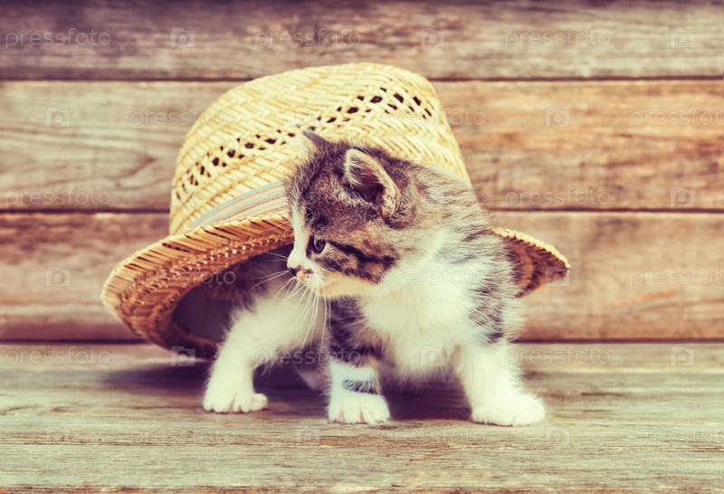 Любопытство котенок под шляпу