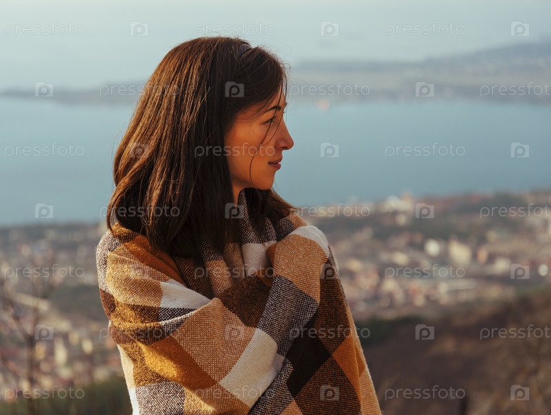 Красивая женщина, завернутые в плед