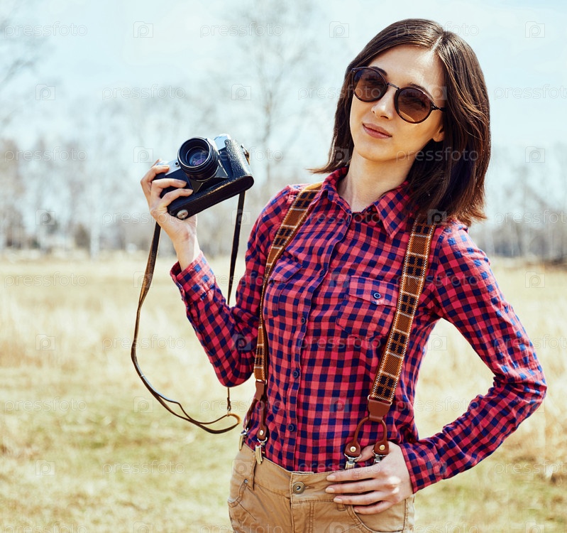 Женщина с винтажные фото камеры весной