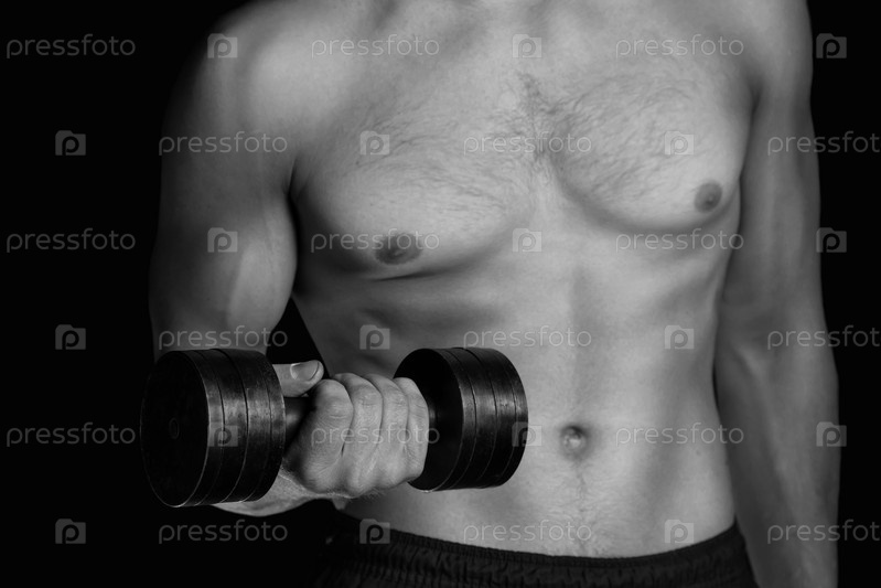 Спортсмен упражнения с металлическими Гантель, монохромное изображение