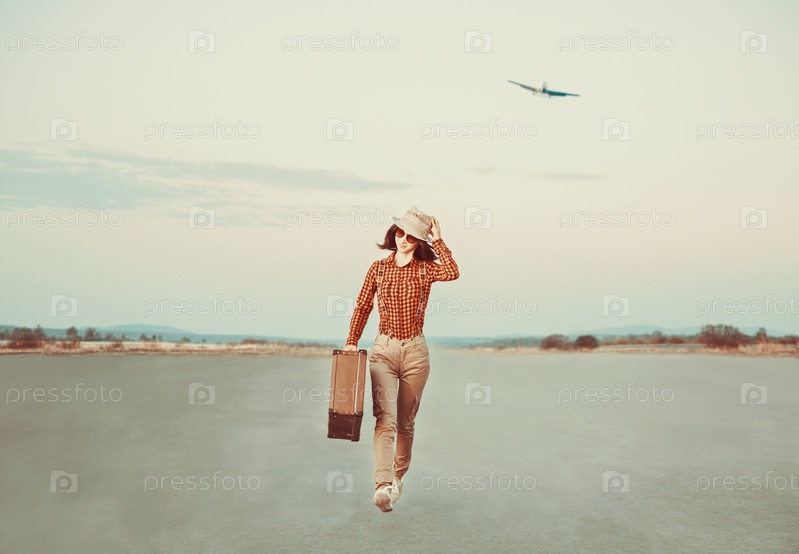 Путешественник с чемоданом на дороге
