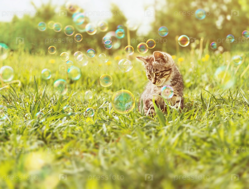 Котенок на лето трава