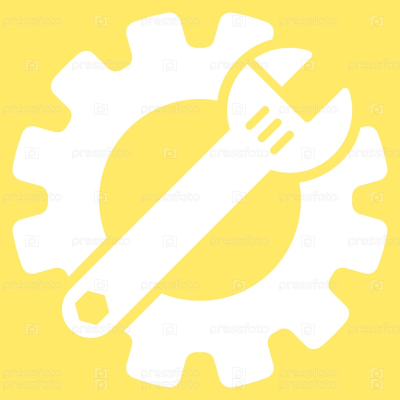 Значок службы инструментов иллюстрации. Стиль является плоской символ, белый цвет, закругленные углы, желтый фон