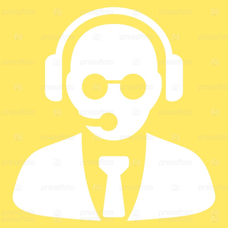 Менеджер поддержки иллюстрации значок. Стиль является плоской символ, белый цвет, закругленные углы, желтый фон