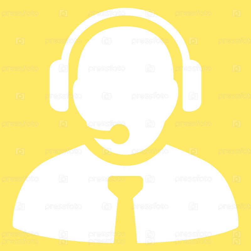 Менеджер поддержки иллюстрации значок. Стиль является плоской символ, белый цвет, закругленные углы, желтый фон