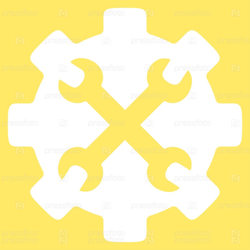 Значок службы инструментов иллюстрации. Стиль является плоской символ, белый цвет, закругленные углы, желтый фон