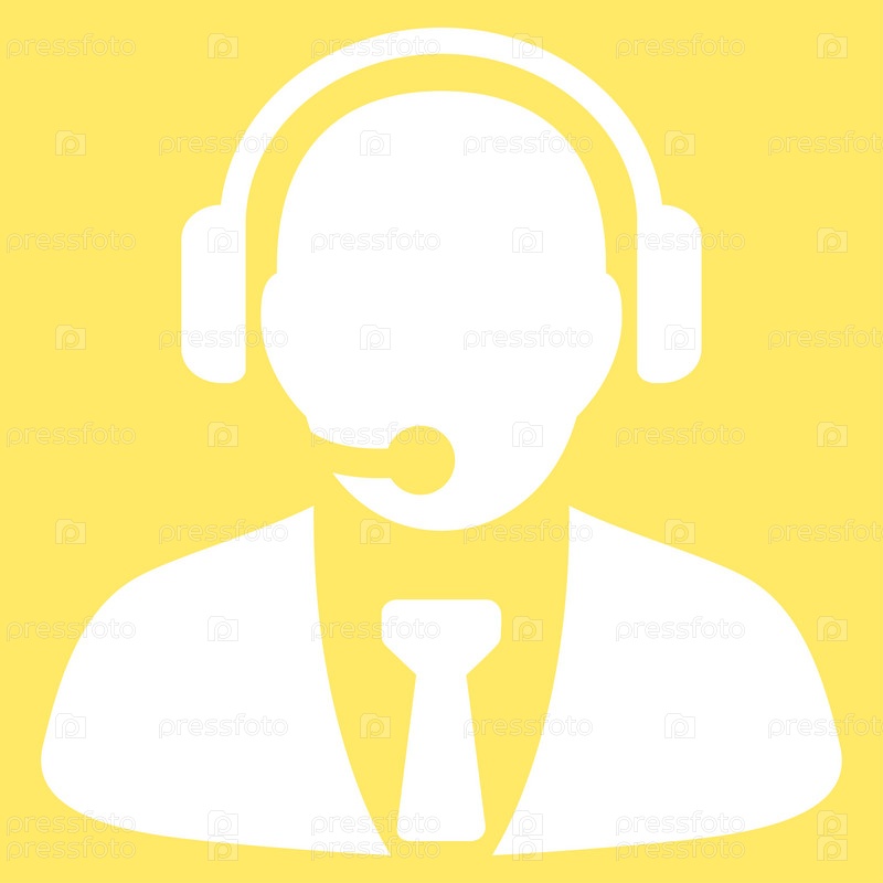Менеджер поддержки иллюстрации значок. Стиль является плоской символ, белый цвет, закругленные углы, желтый фон