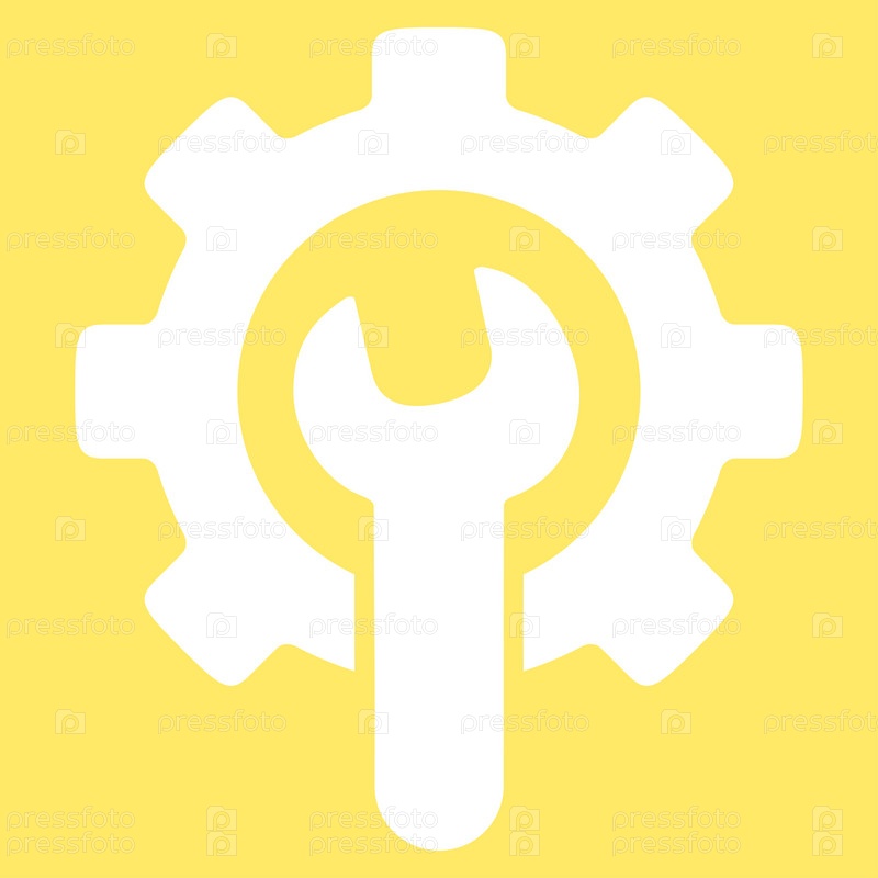 Значок службы инструментов иллюстрации. Стиль является плоской символ, белый цвет, закругленные углы, желтый фон