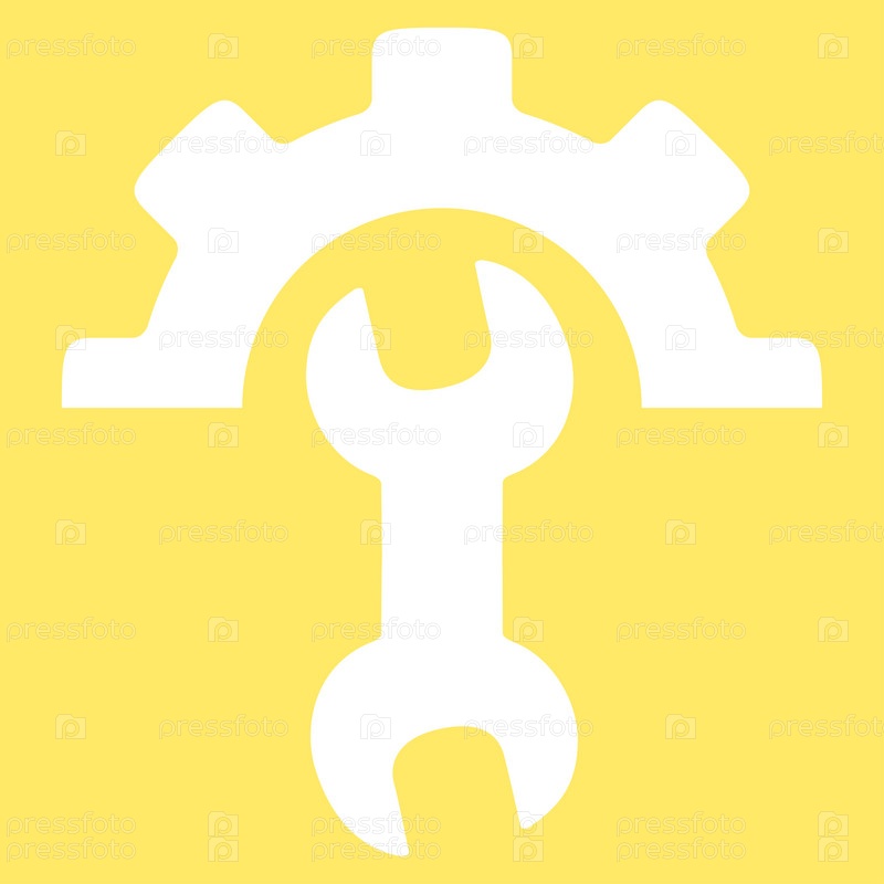 Значок службы инструментов иллюстрации. Стиль является плоской символ, белый цвет, закругленные углы, желтый фон