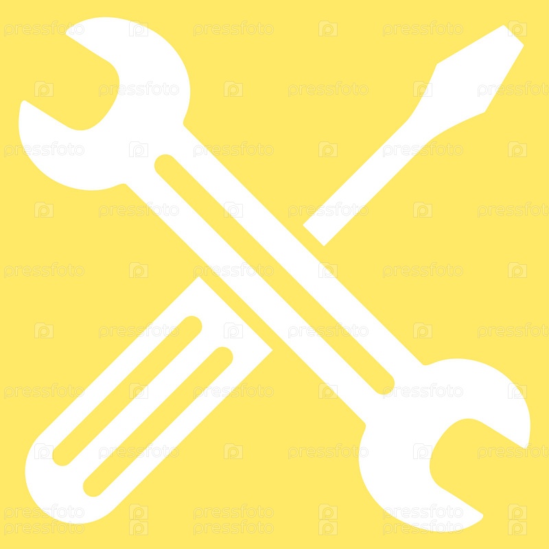 Гаечный ключ и отвертку иллюстрации значок. Стиль является плоской символ, белый цвет, закругленные углы, желтый фон