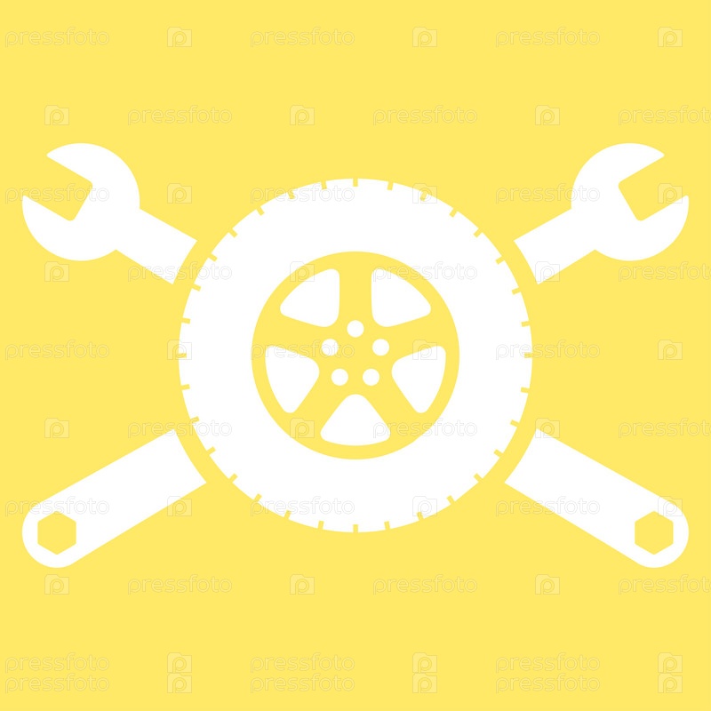 Шина службы иллюстрации значок. Стиль является плоской символ, белый цвет, закругленные углы, желтый фон