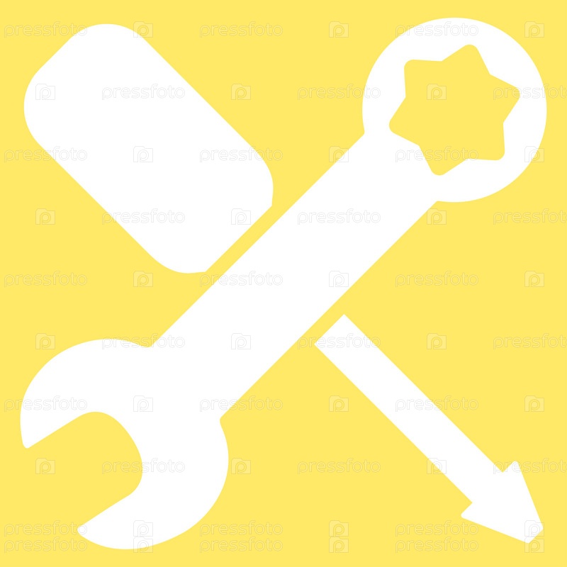 Значок инструменты иллюстрации. Стиль является плоской символ, белый цвет, закругленные углы, желтый фон