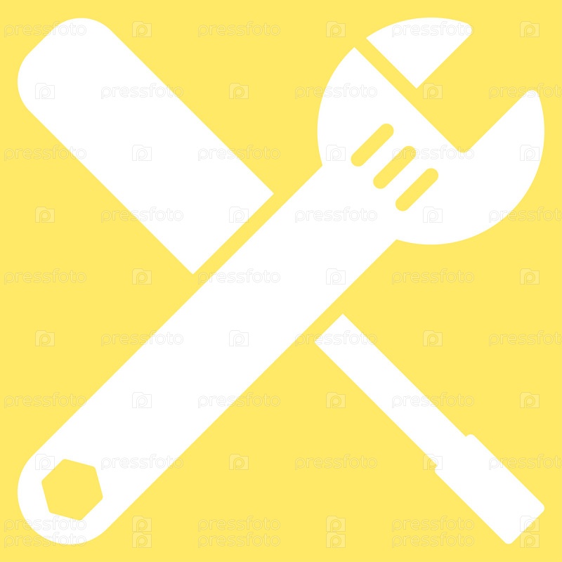 Значок инструменты иллюстрации. Стиль является плоской символ, белый цвет, закругленные углы, желтый фон