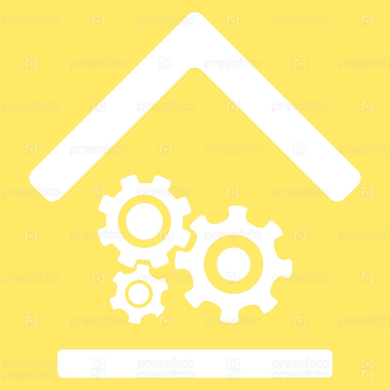 Мастерская иллюстрации значок. Стиль является плоской символ, белый цвет, закругленные углы, желтый фон