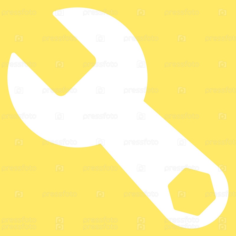 Иллюстрация значок гаечного ключа. Стиль является плоской символ, белый цвет, закругленные углы, желтый фон
