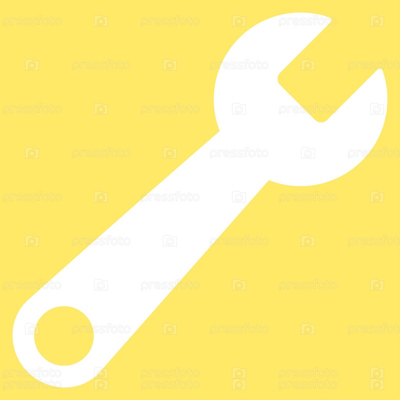 Иллюстрация значок гаечного ключа. Стиль является плоской символ, белый цвет, закругленные углы, желтый фон