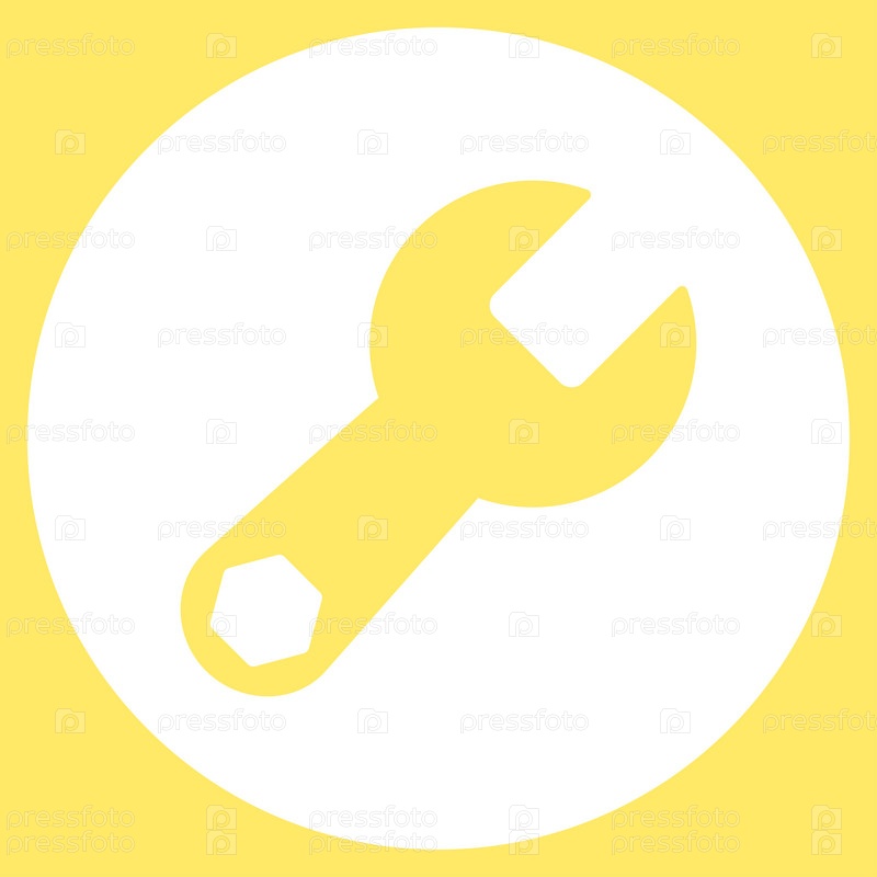 Иллюстрация значок гаечного ключа. Стиль является плоской символ, белый цвет, закругленные углы, желтый фон