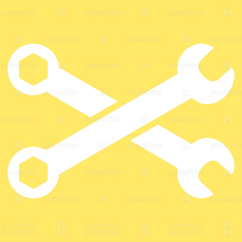 Иконка Ключи иллюстрации. Стиль является плоской символ, белый цвет, закругленные углы, желтый фон