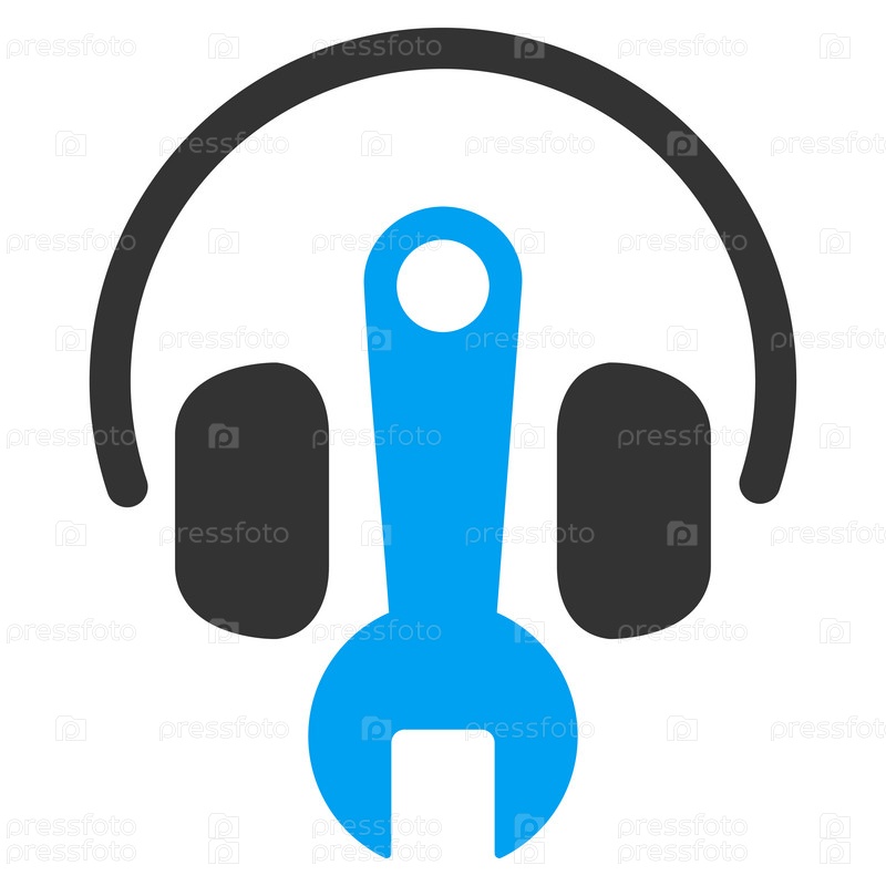 Значок наушников инструментов иллюстрации. Стиль является биколор плоский символ, голубой и серый цвета, закругленные углы, белый фон