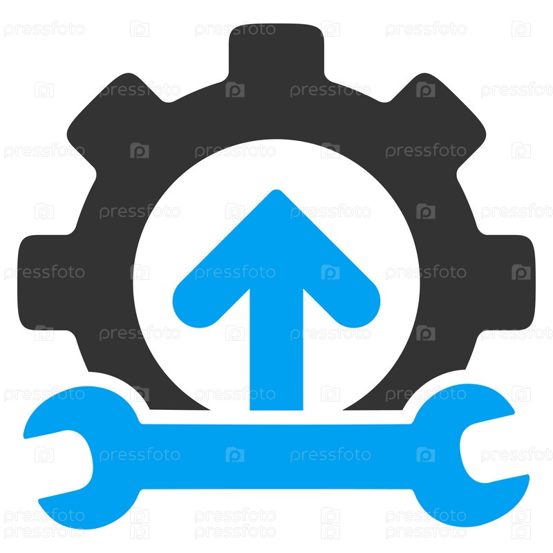 Интеграция инструментов иллюстрации значок. Стиль является биколор плоский символ, голубой и серый цвета, закругленные углы, белый фон