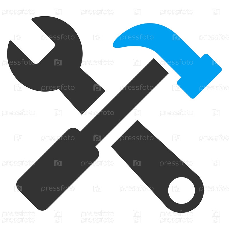 Молоток и иллюстрации инструментов. Стиль является биколор плоский символ, голубой и серый цвета, закругленные углы, белый фон