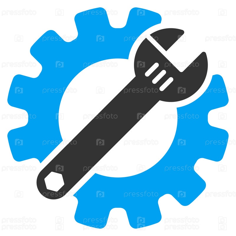 Значок службы инструментов иллюстрации. Стиль является биколор плоский символ, голубой и серый цвета, закругленные углы, белый фон