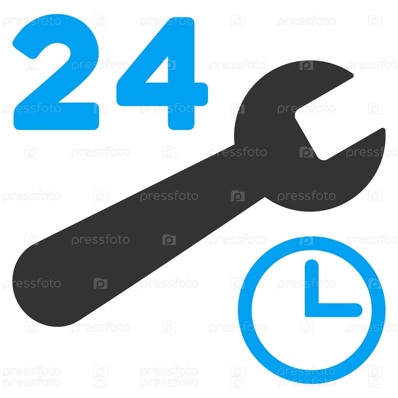 Сервисные часы иллюстрации значок. Стиль является биколор плоский символ, голубой и серый цвета, закругленные углы, белый фон