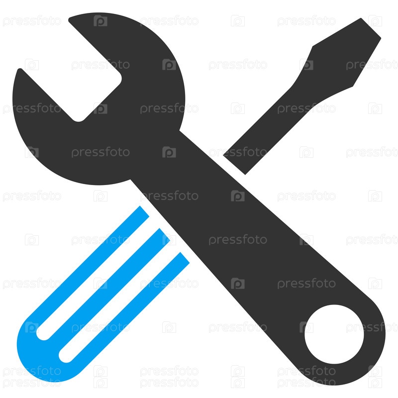Значок инструменты иллюстрации. Стиль является биколор плоский символ, голубой и серый цвета, закругленные углы, белый фон