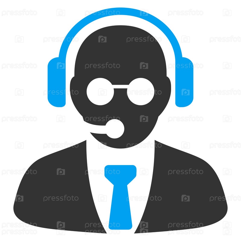 Менеджер поддержки иллюстрации значок. Стиль является биколор плоский символ, голубой и серый цвета, закругленные углы, белый фон