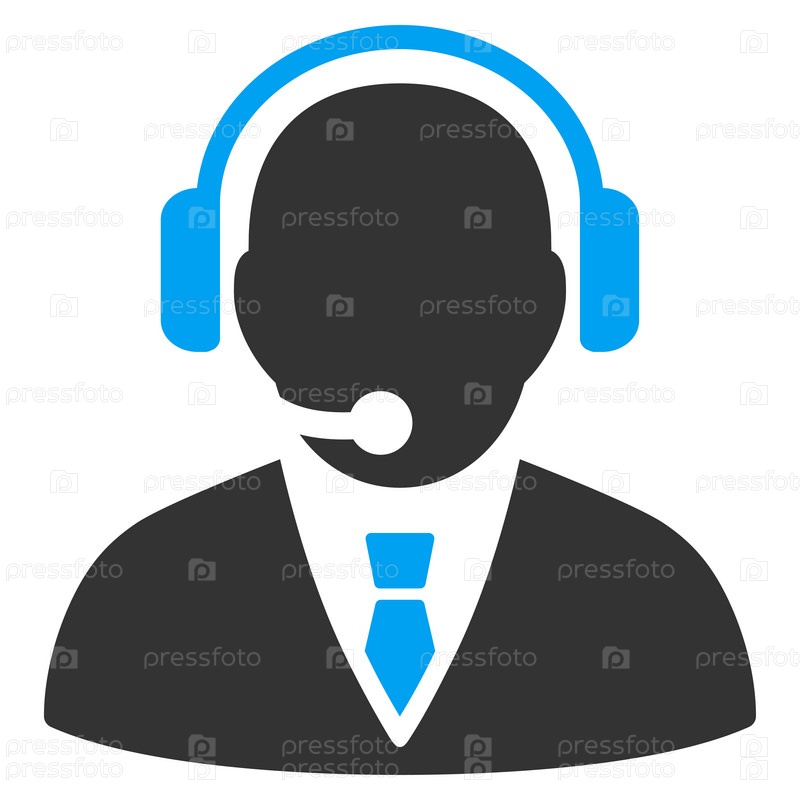 Менеджер поддержки иллюстрации значок. Стиль является биколор плоский символ, голубой и серый цвета, закругленные углы, белый фон